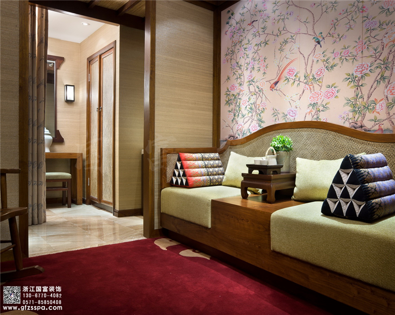 足浴店裝修中有一條很好記的法則:把窗簾掛在窗框上方5公分的高度。如果你的天花很高,那就把窗簾從足浴按摩店墻壁的頂部一直掛到地面,使空間顯得更大。當然你也可以簡單到僅僅掛一幅小的麻制的羅馬簾來遮擋光線。